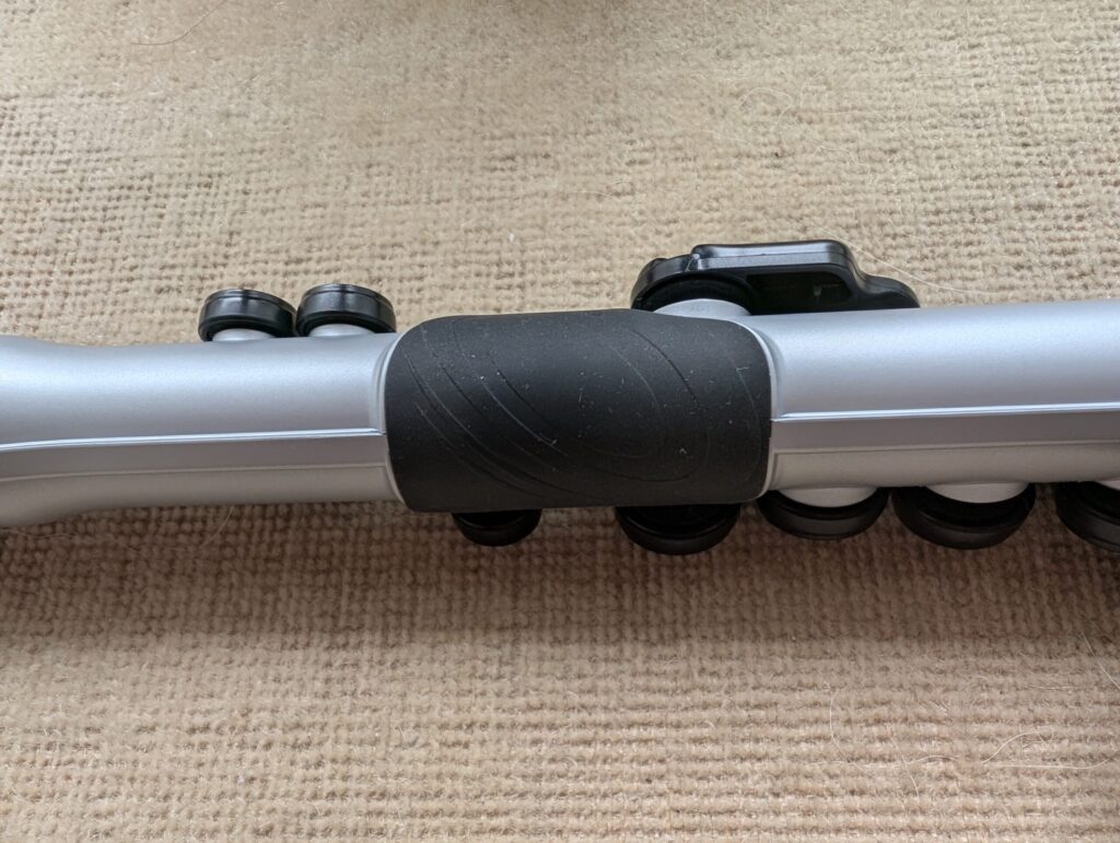 NUVOステューデントフルートは、ちょうどリッププレートと右手の支える箇所に滑り止め加工がされていて、ずるっと滑らない工夫がされています。